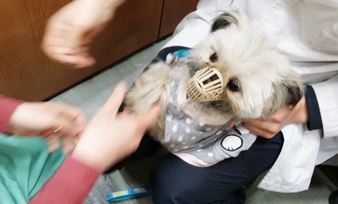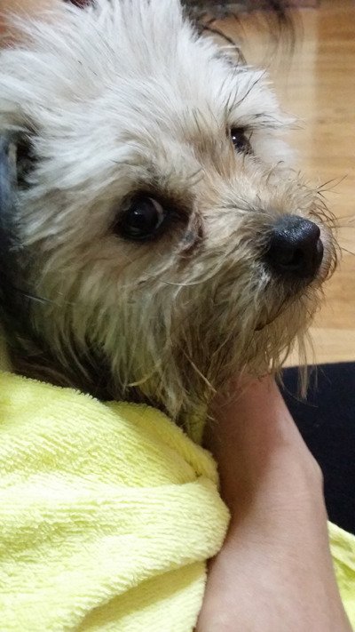 삼순이가 많이 놀랐는지 원장님 품에서 대변을 봐버렸습니다. ㅠㅠ