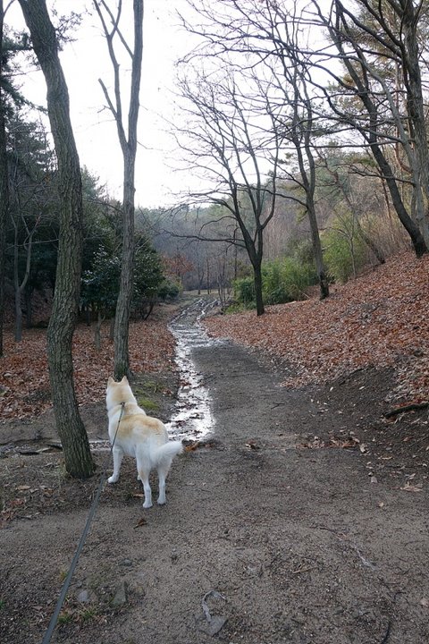 전날 비가 와서 물길이 만들어 졌어요.. 루키가 있었으면 저런곳은 그냥 지나치지 않는데.