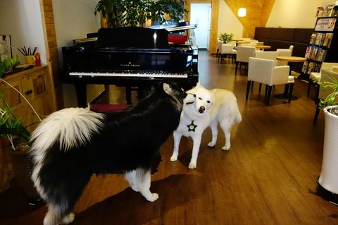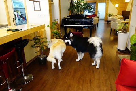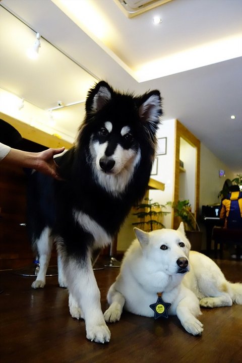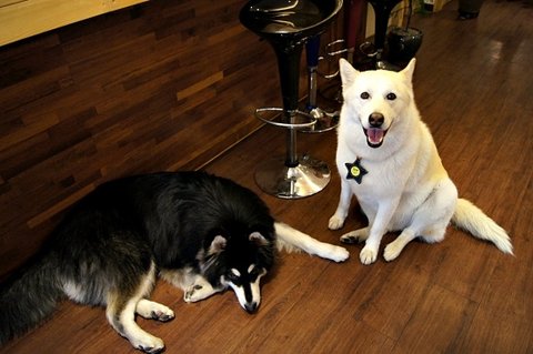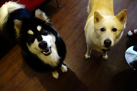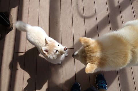 요즘 동네에서 잘 안만나지는 백구친구가 궁굼했는지 심바가 백구네 집에 들렸어요