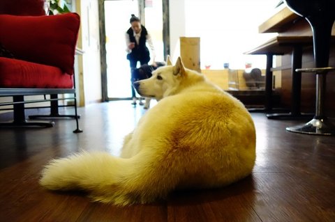 제가 음료 마시는 동안 심바는 항상 바닥에서 이렇게 쉬고 있어요