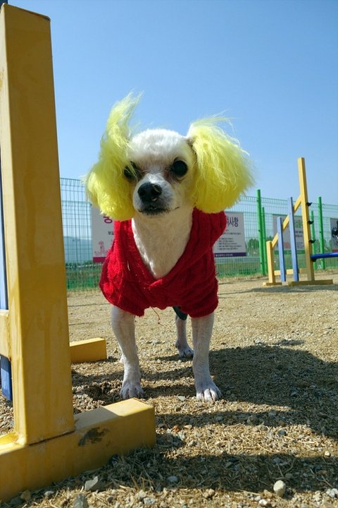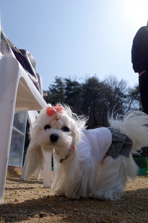 이뻐라. 소형견은 옷도 입히고 이렇게 아기자기하게 꾸며줄수 있어서 재미나겠어요