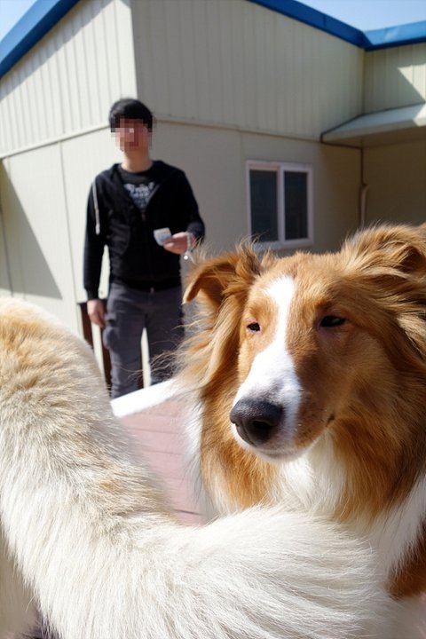 심바 소리 듣더니 백구가 오고 있어요