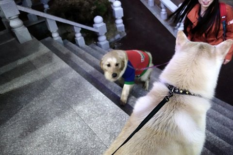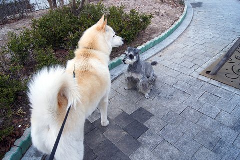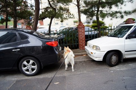 백구는 산책하는 심바가 부러웠던 모양이에요