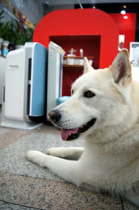 동물병원에 놀러와서.. 바닥에 엎드려 개친구가 오길 기다리는 심바