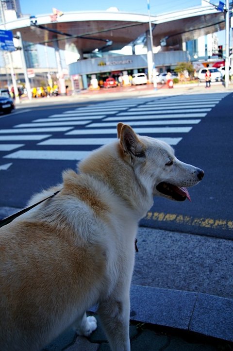 횡단 보도에서 신호 기다리고 있는 심바