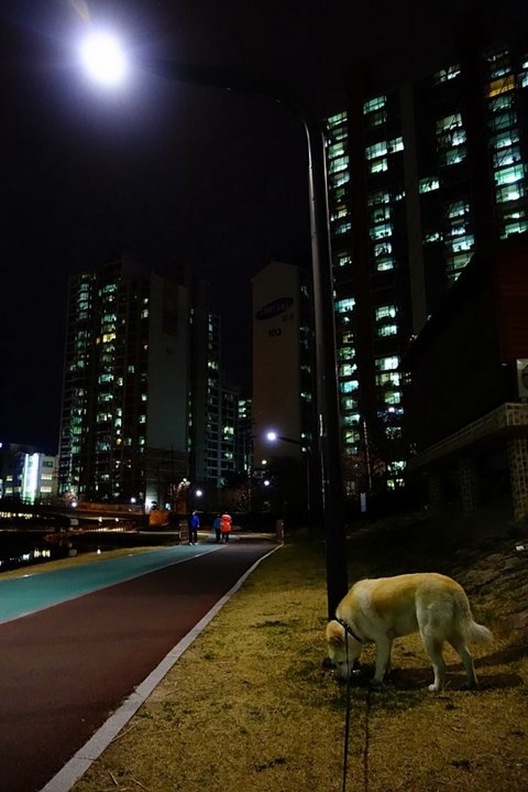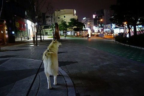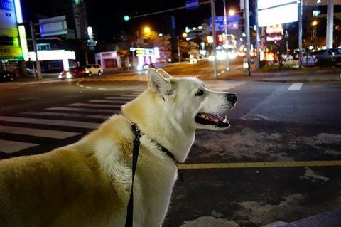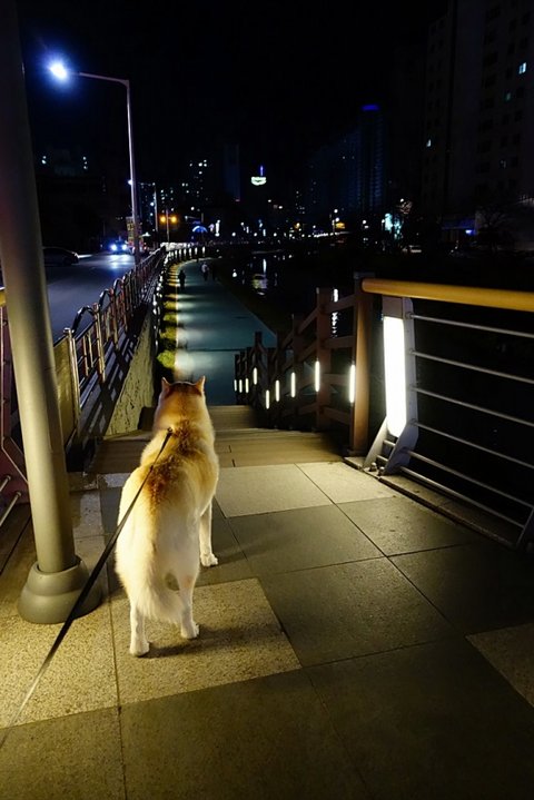 밤 산책 나가자고 했더니 기분 좋은 심바