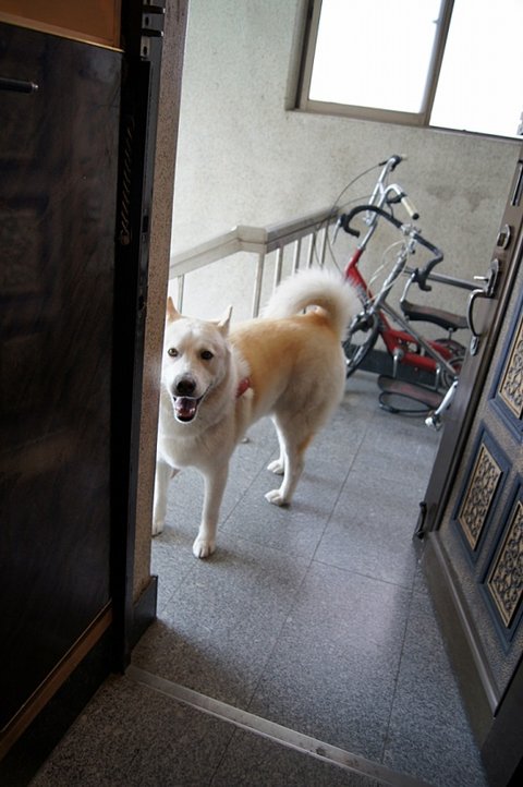 집에 가려고 나서다가.. 귀여운 메리랑 마주쳤어요.ㅎㅎㅎ