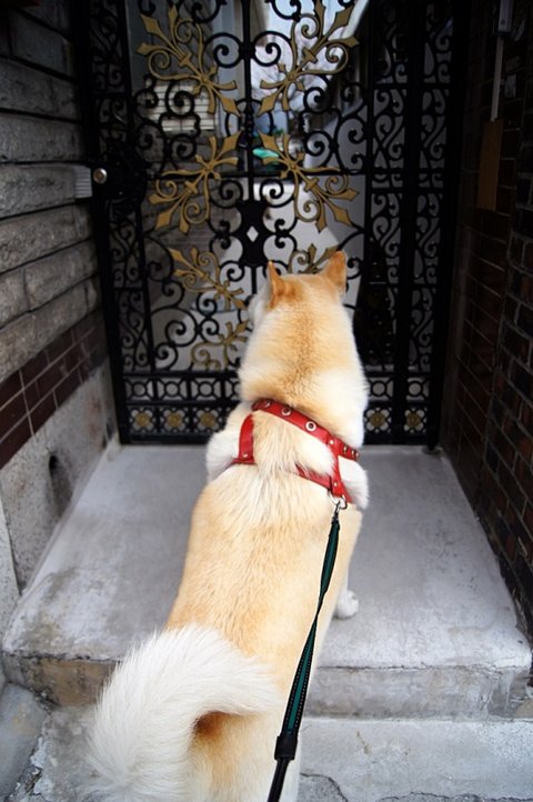 형아 산책가요 하면서 대문앞에서 대기하고 있는 심바