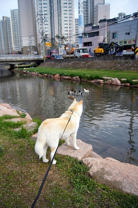 여천천으로 산책나온 심바