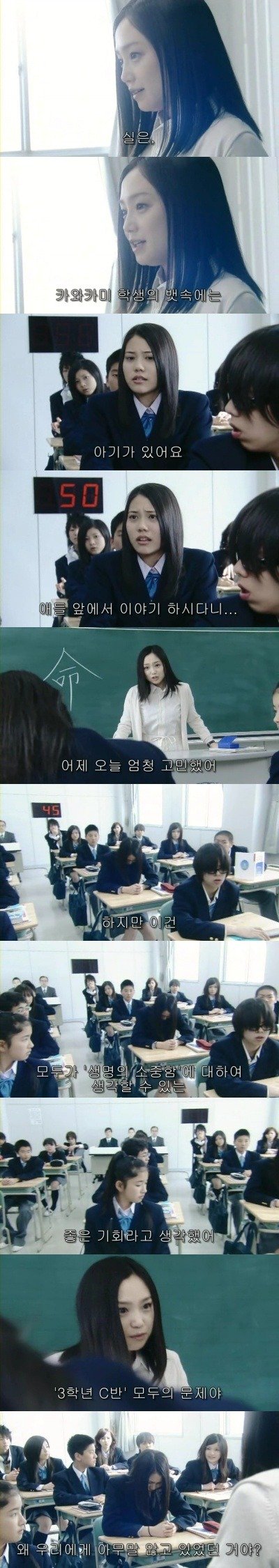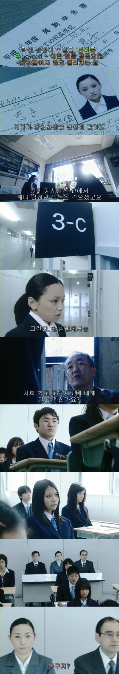 그러던중 한 불량한 학생이 불만을 토하며 교실을 나가자