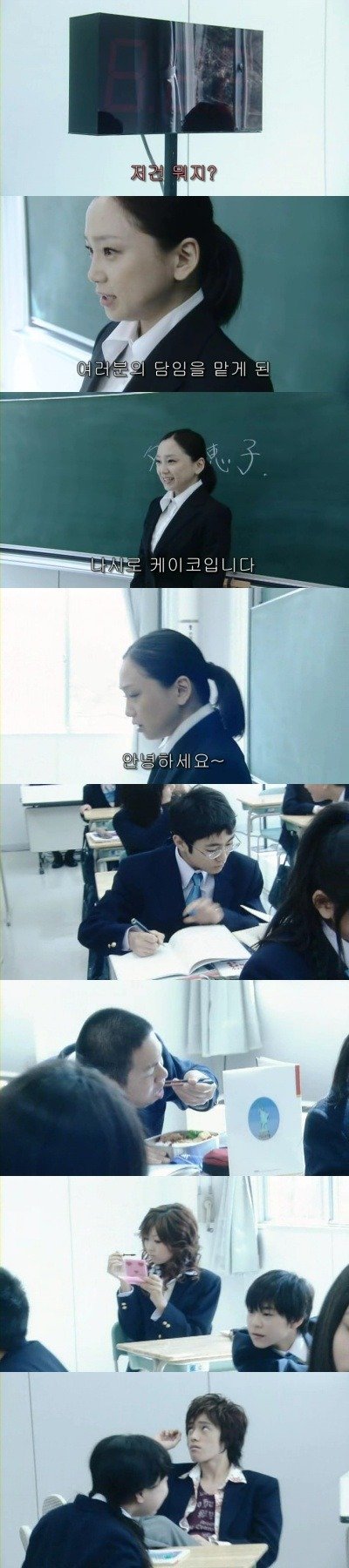 선생님에게 장난을 치오 옆에서 반장이 말리고