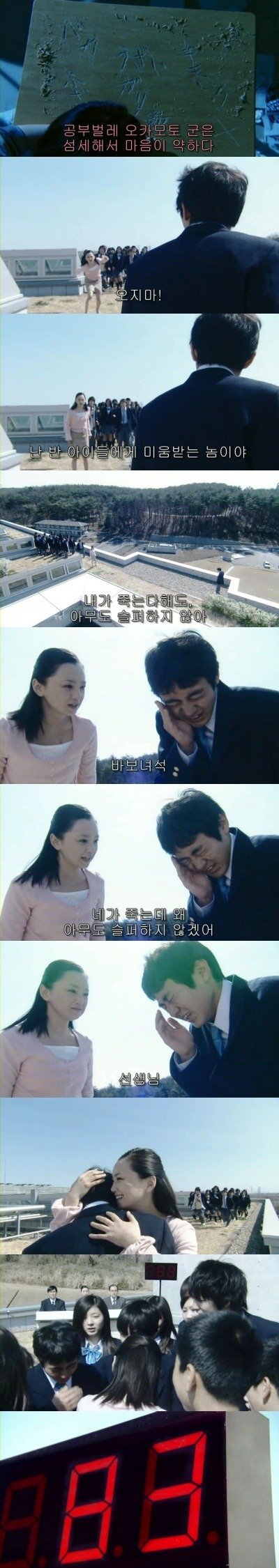 아이들은 선생님주위에 모여 선생님을 향해 절규하오