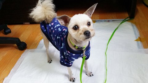 현재는 넓게 대변패드를 깔아두고 목줄까지 채워서 교육을 시도하는데