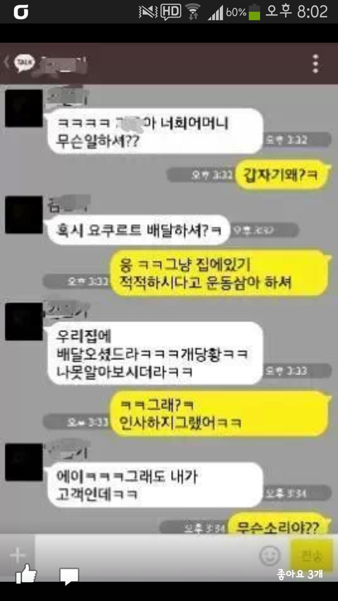 뭐 저런게 다있어~~~~ 친구 엄마면 음료수라도 한잔 드리던가 물이라고 예의없는것