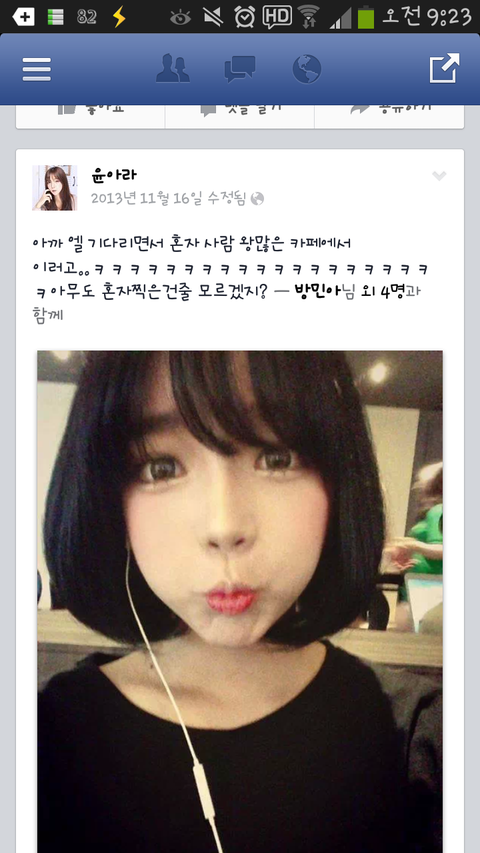 윤아라페북보니깐 방민아도 잔뜩 올린거마다 태그해놓고 헨리도 영어쓰고태그하고 지영 손나은 이런애들도 되게 많이 태그해서 뭐라 썻던데 윤아라연애인됬어요???