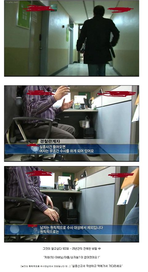 아예 안하는건 오바고 여자를 대상으로 한 범죄가 더 많으니까 여자쪽에 더 비중을 둬야하는건 맞지. 성폭행이던 살인이던 힘약한 여자를 대상으로 한 범죄가 많잖아 일단 저항할수있는 힘이 약하니까 남자 여자 둘이있으면 여자쪽을 노리지 ------------------------------------------------------------------- 오늘 일정이 있어서 하루종일 나갔다 왔습니다. 베플이 되어있네요. 이미 댓글에 달았지만 저 비중이란 말이 결코 남자 수사를 소홀히 하자는 뜻이 아닙니다. 밑에 다른 분들이 쓴 댓글에 비유하자면 여자가 약자이니 좀더 범죄의 대상이 될것이고 그에 따라 수사반을 더 늘리자는 거지 남자쪽 수사를 소홀히 하자는 얘기는 아니었습니다. 오해하신 분들이 많은 것 같은데 죄송합니다. 제가 단어 선택을 잘못한 것도 크고 저 본문글에 이런 댓글은 오해받을만 하네요. 저도 남자형제 있고 부모님이 있습니다. 남자라고 수사를 소홀히 한다니 그건 안 될 말이지요. 그저 여자가 약자이고 범죄의 표적이 되기 쉬우므로 그에 따른 인원을 더 투입하던지 해서 더 신경써야 한다는 이야기였습니다. 베플이 될줄 모르고 신중하게 쓰지 못했는데, 그점 죄송합니다.
