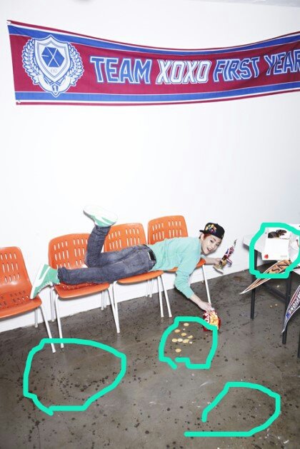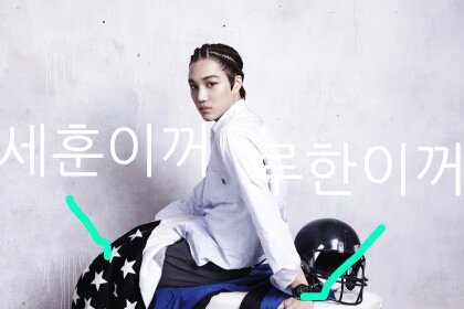 세훈자켓사진을보면 입에 과자를 물고있다.