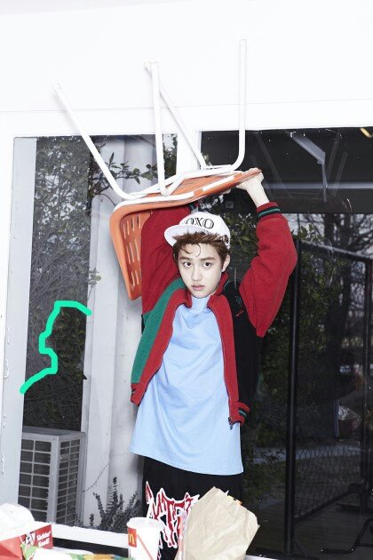 풍선껌을 불면서 찍은것도 정면으로 찍은게아니고 비스듬히. 그것은 보고도 못본척.(찬열뭘본겨?)