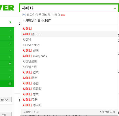 샤이니치면 샤이니바로밑에 샤이니갤러리나오는 수준...