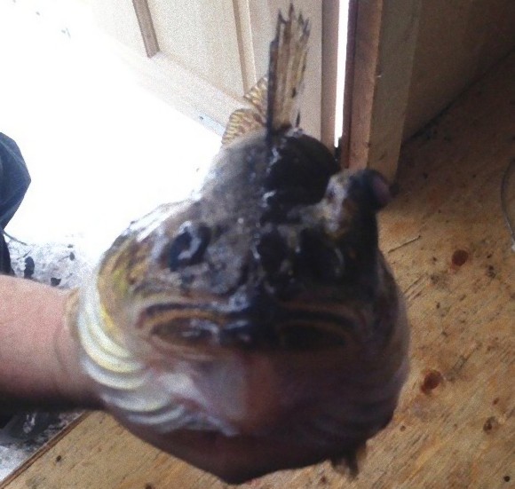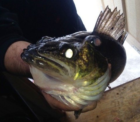 캐나다 온타리오주 니피싱그 호수에서 낚아 올린 눈 3개달린 물고기