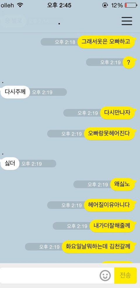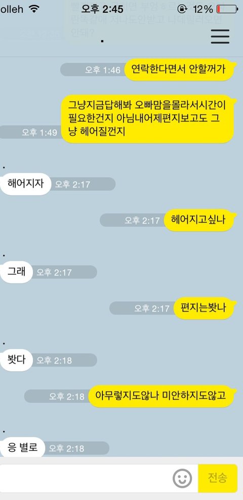 오늘 제가저렇게보내니까헤어지자네요