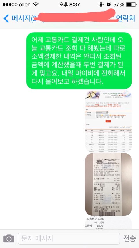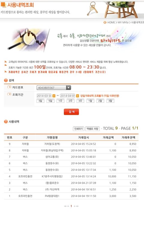 그래서 그쪽에서도 포스기 점검 하시고, 저도 마이비에 사용 내역조회 해보겠다고 정리를 하고 제 이름과 전화번호를 적어놓고 일단 나왔습니다.