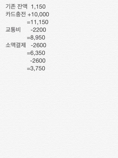 그런데 결제 후 잔액을 보니 돈이 맞지않아 알바생분께 "이 전에 결제가 된 것 같은데 확인 한번 해주세요" 이랬는데, "결제는 한번 된걸로 뜨는데요" 이래서 "다시 한번 확인해주세요." 하고 저도 계산을 해봤습니다.