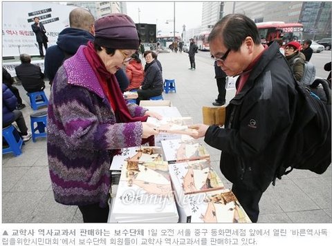 지난 3.1절. 서울 도심 한복판에 기가 막힌 광경이 벌어졌다. 교학사 교과서가 친일 논란으로 채택이 불발되자 전직 여당 의원과 극우시민단체들이 가판대를 차려놓고 이 친일교과서 판매에 나선 것이다.