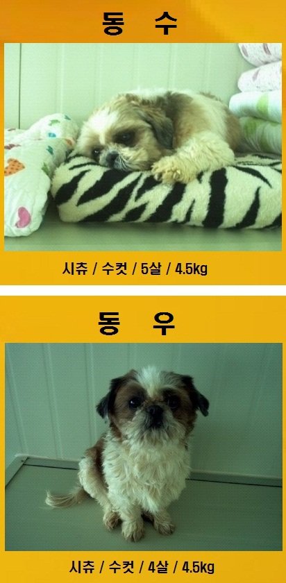 병원에서 시츄 두 마리를 구조해 왔어요