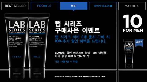 랩시리즈 비비크림 2개 단위 구매시 VIP 추가 10% 할인 + 7ml 여행용 샘플 증정.