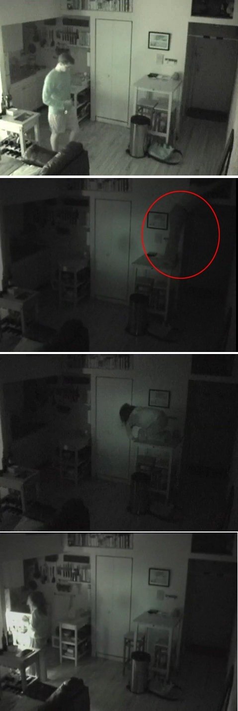 동영상 속의 여성은 집 주인이 잠든 사이 몰래 기어 나온다.