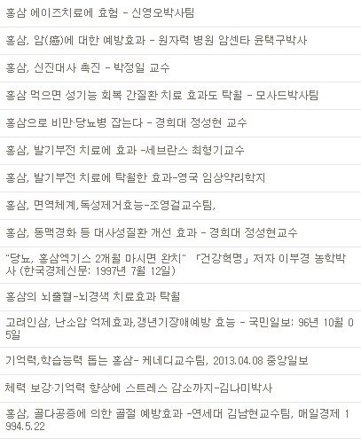 끝으로 홍삼의 효능에 관한 임상실험결과를 요약하며 마무리 짓겠습니다.