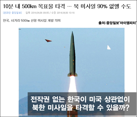 2014년 4월 7일 조선일보는 1면에 무인기 관련 소식과 함께 한국 정부가 전작권을 다시 연기한다는 소식을 보도했습니다.