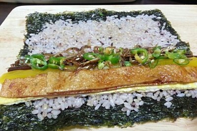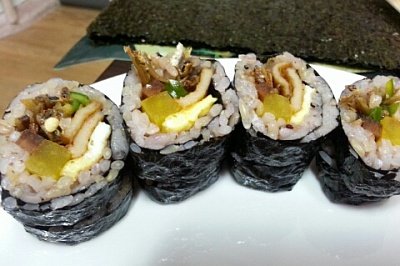 멸치반찬이 있는데 하도 안먹고 냅둬서리 청량고추랑 멸치넣고 김밥을 말았어요