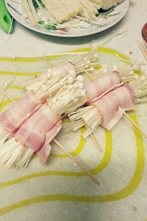 팽이버섯을 저렴하게 행사하길래 휘릭 사와서 베이컨에 말아요~