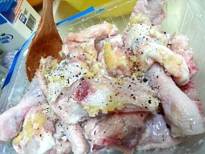 닭사와서 우유에 담그었다가 다진마늘과 후추로 재운다음에