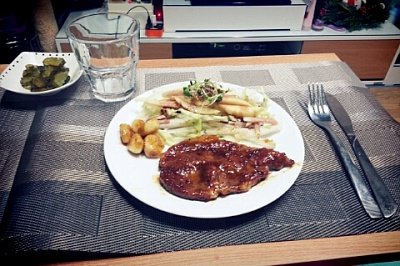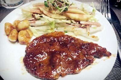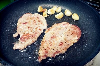 후라이팬에 굽다가 스테이크 양념을 붓고 좀만 졸여주면