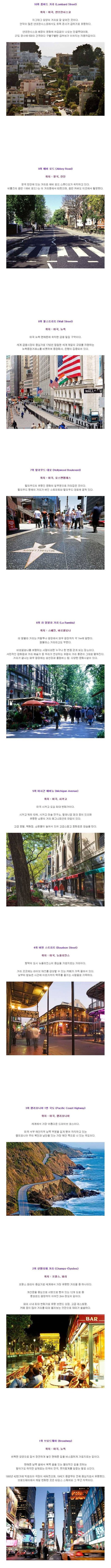 세계에서 사람들이 가장 많이 방문한 거리 BEST10