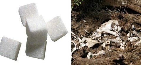 불탄 동물 뼈, 구운 뼈로 원당을 여과시키고 탈색시키는데 사용됩니다.
