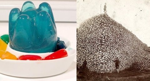 동물의 연골 조직에서 추출한 응고제인 젤라틴(Gelatin)으로 만듭니다.