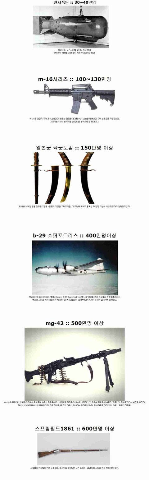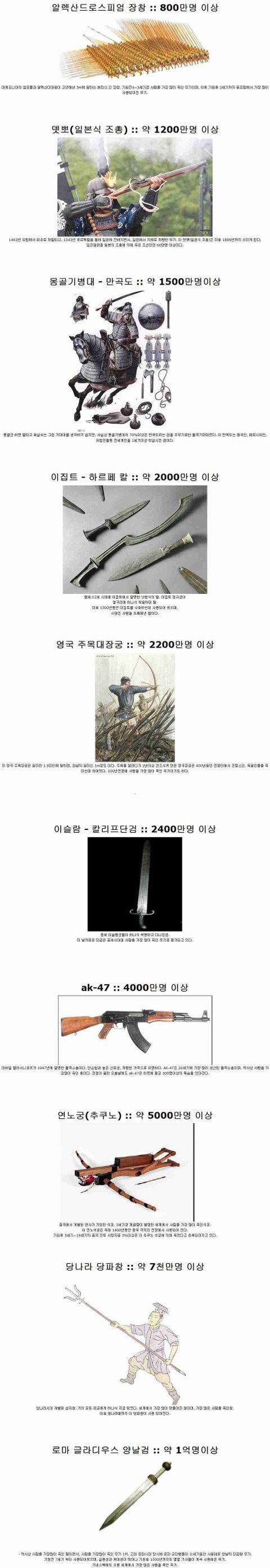 역사상 사람을 가장 많이 죽인 무기들