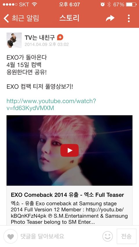이거 풀빵에 엑소중독이라고뜬거를 팬이사진으로짜집기한거