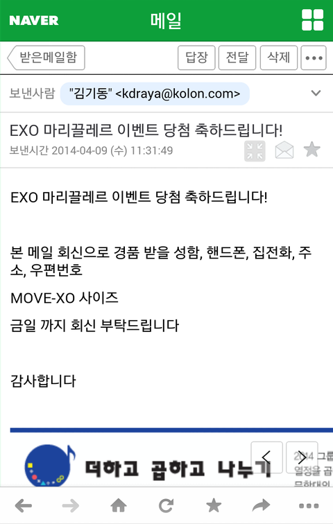 진짜 이렇게되다니..이벤트에 응모한 그 많고 많은