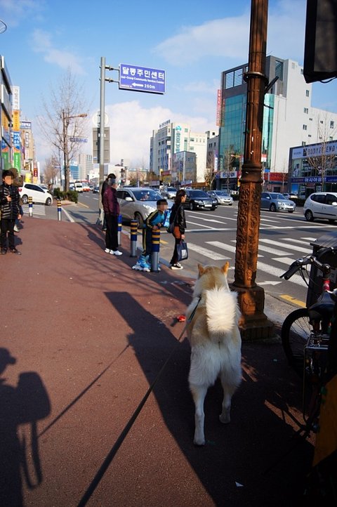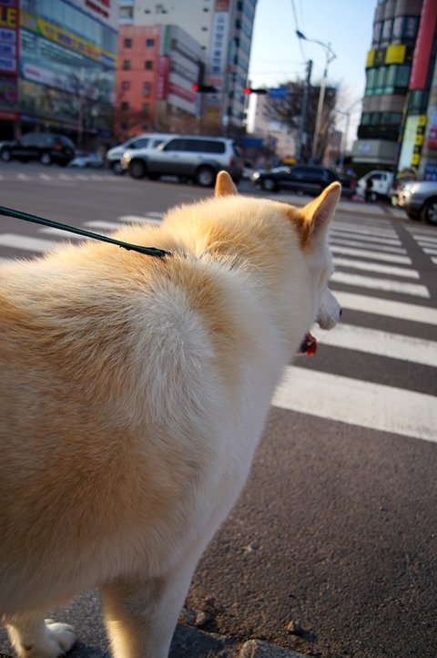 횡단보도 신호 기다리면서 얌전히 잘 있어요
