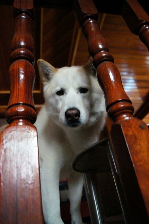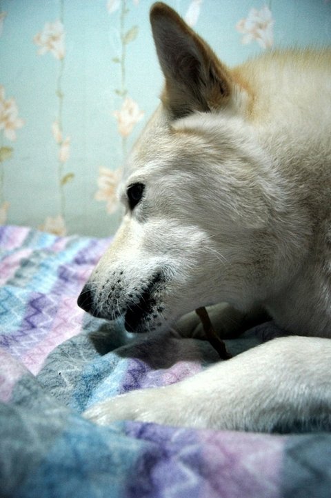 아침에 산책가자고 빤히 쳐다보고 있어요. 눈빛 공격..ㅎㅎ