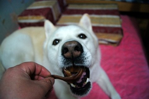 개껌을 맛나게 먹었어요