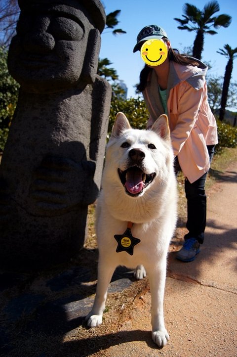혀를 내밀고 늠름하게 찍어봤어요