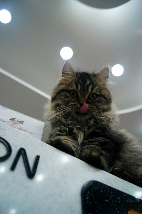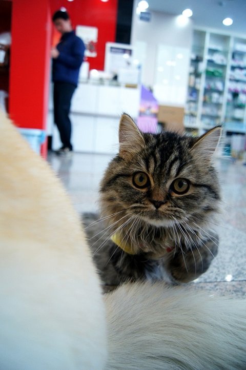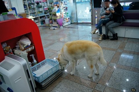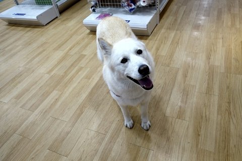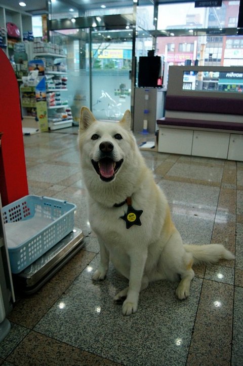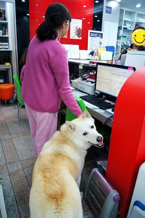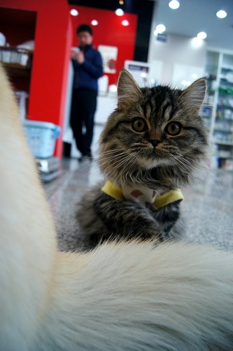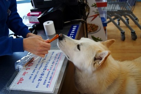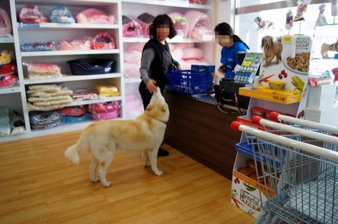 애완용품점 와서.. 다른 손님께 아는척 하고 있어요.ㅎㅎ