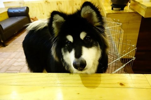 심바는 카운터 앞에서 웃으면서.. 간식을 노리고 있어요.ㅎㅎ