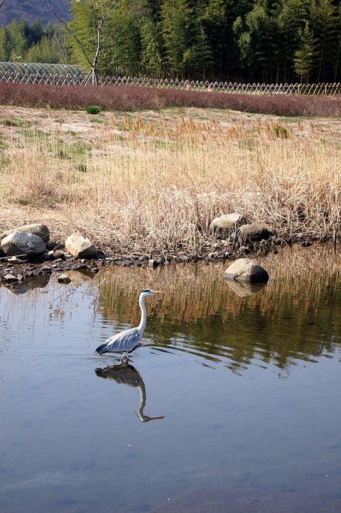 왜가리 한마리가 여유롭게 걸어다니고 있었어요.